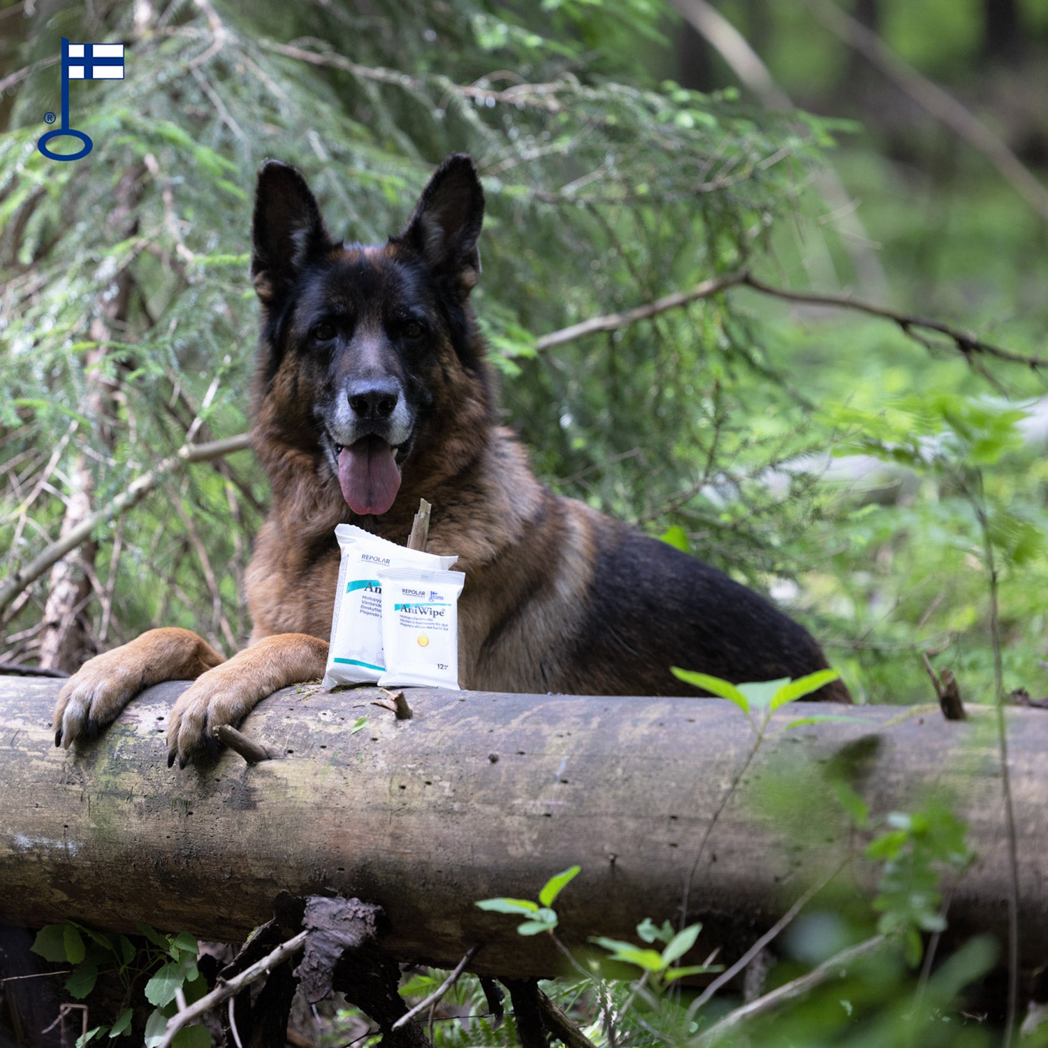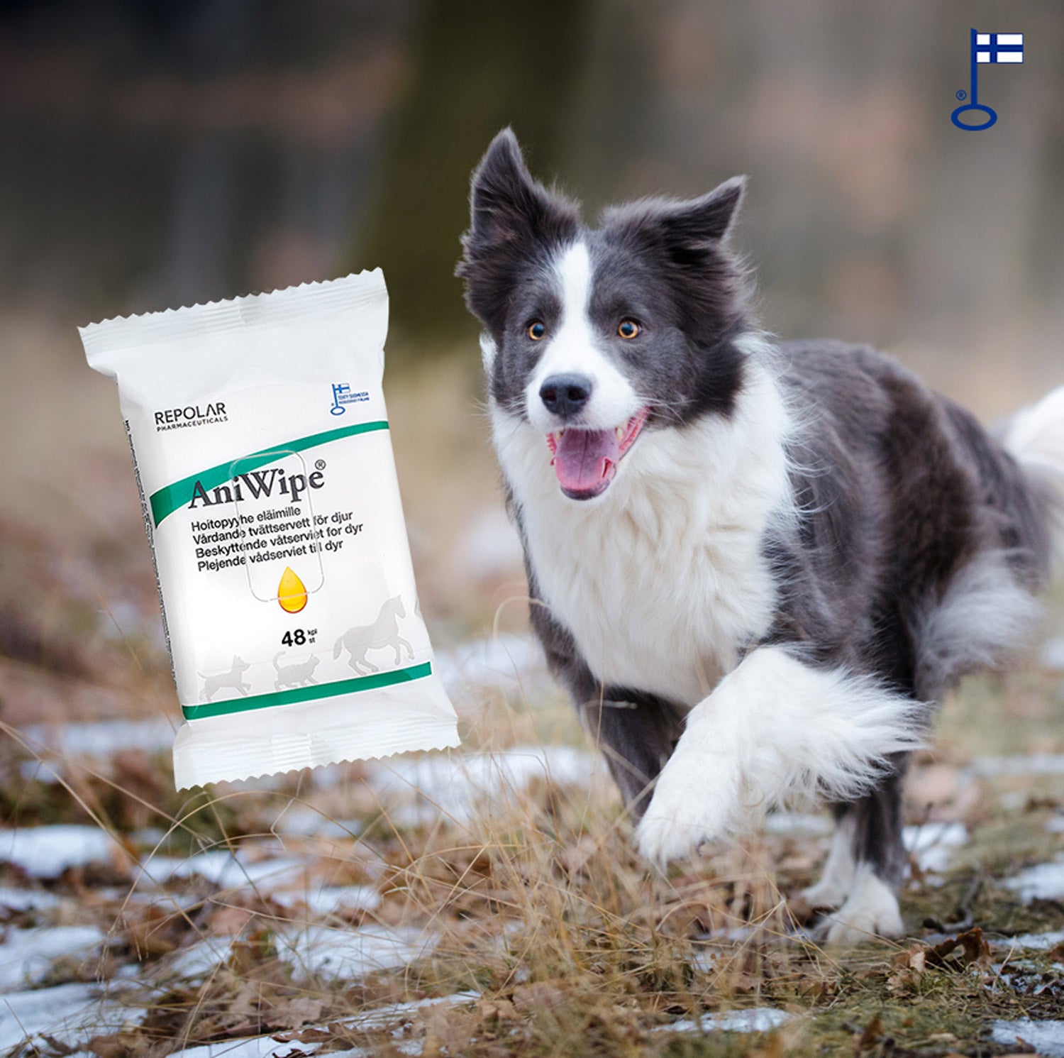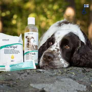 AniWipe care wipes and a dog
